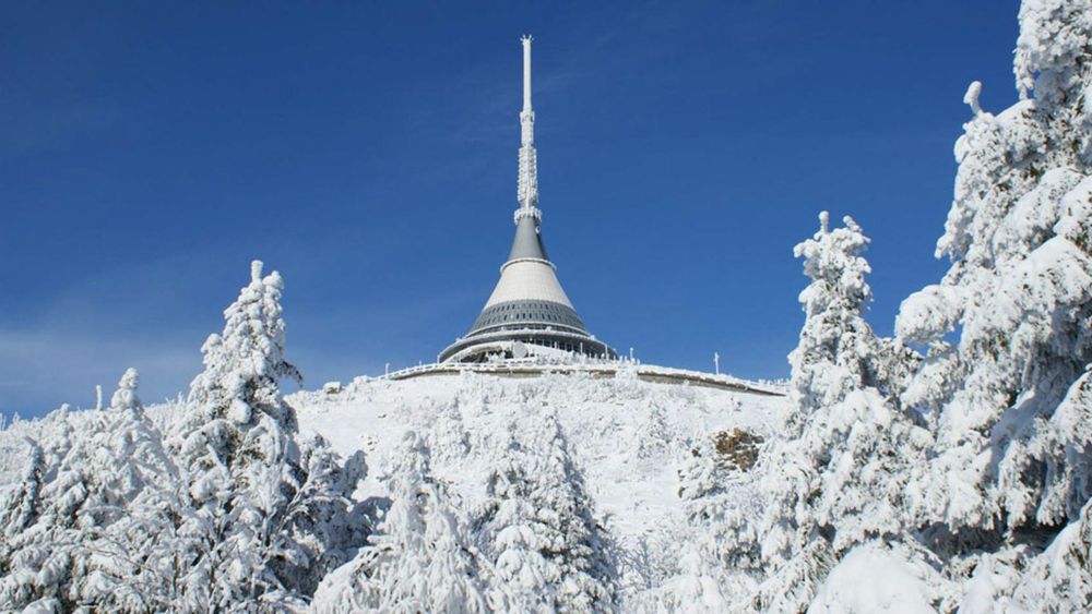On top of Mount Ještěd a hotel is located in a very interesting building: a television tower. The tower is 94 metres high and the hotel is situated in the lower part of the building. HotelJeštěd’s rooms look futuristic: the simple interior brightens up because of the big windows on the slanted wall that give an amazing view of the valley. The shape of the rooms makes it seem as if you are in a spaceship, especially being so high up in the sky.