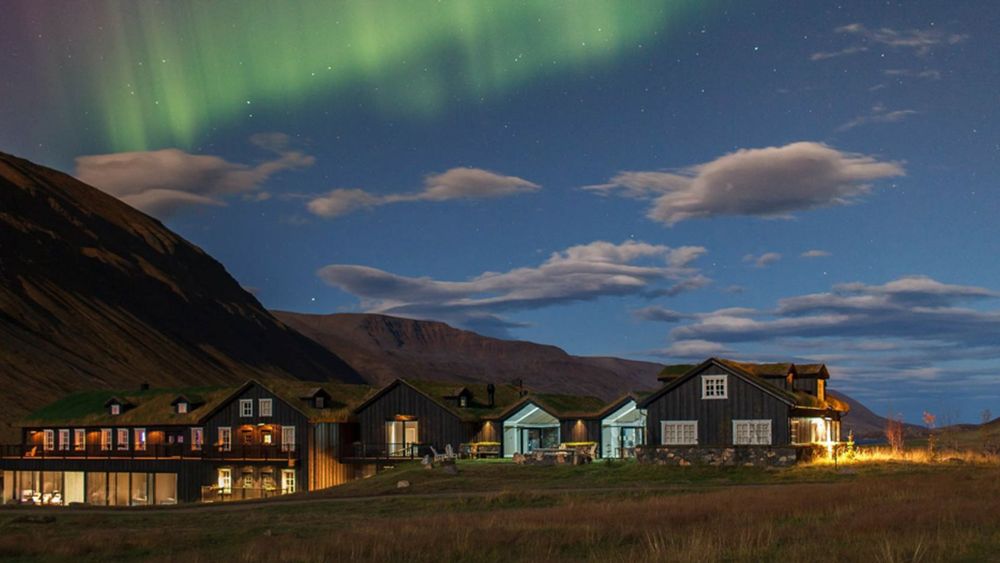 The grass that beautifully grows on top of the roof makes the farm blend in with its surroundings, which you can explore during the day by hiking or kayaking. At Deplar Farm there are also plenty of ways to relax, for instance in one of the geothermal springs, the spa or in the indoor or outdoor pool. At night there is a classic bar where bands perform and where you can play ping pong.