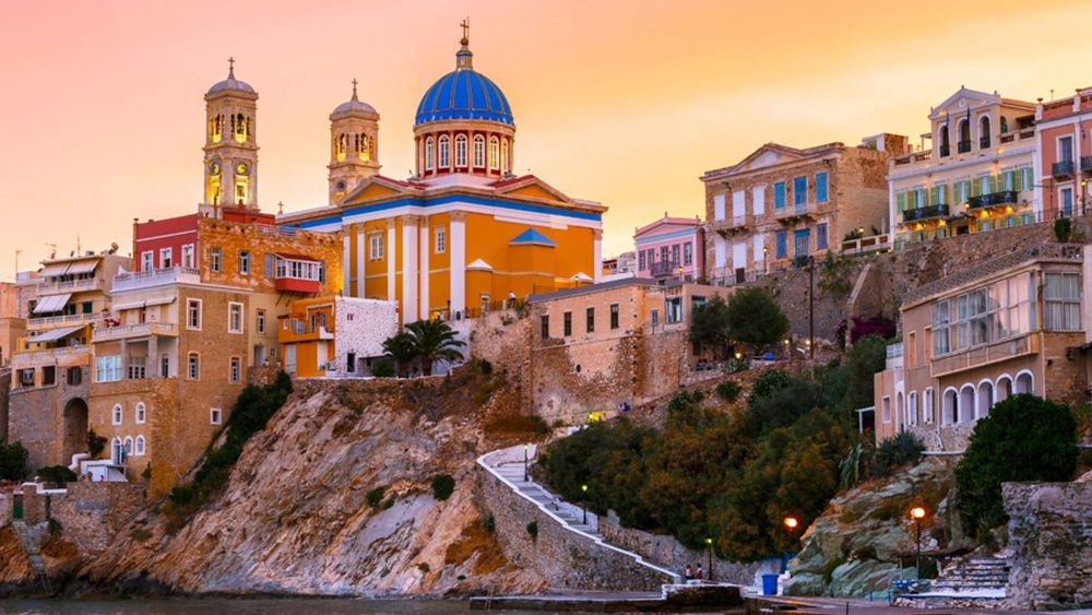 Syros is a beautiful island that draws visitors because of its unique capital city, Ermoupoli. Ermoupoli is a stunning port town that has a vibrant blend of culture and history and looks quite distinctive from a lot of other Greek towns, due to its neoclassical architectural style. When visiting the port town, you can walk along the promenade along the waterfront while appreciating the neoclassical buildings, some of the impressive churches, and of course, all while overlooking the Aegean Sea. For a smaller village feel, you can explore the picturesque village of Ano Syros, which offers amazing sea views from perched upon a mountain.