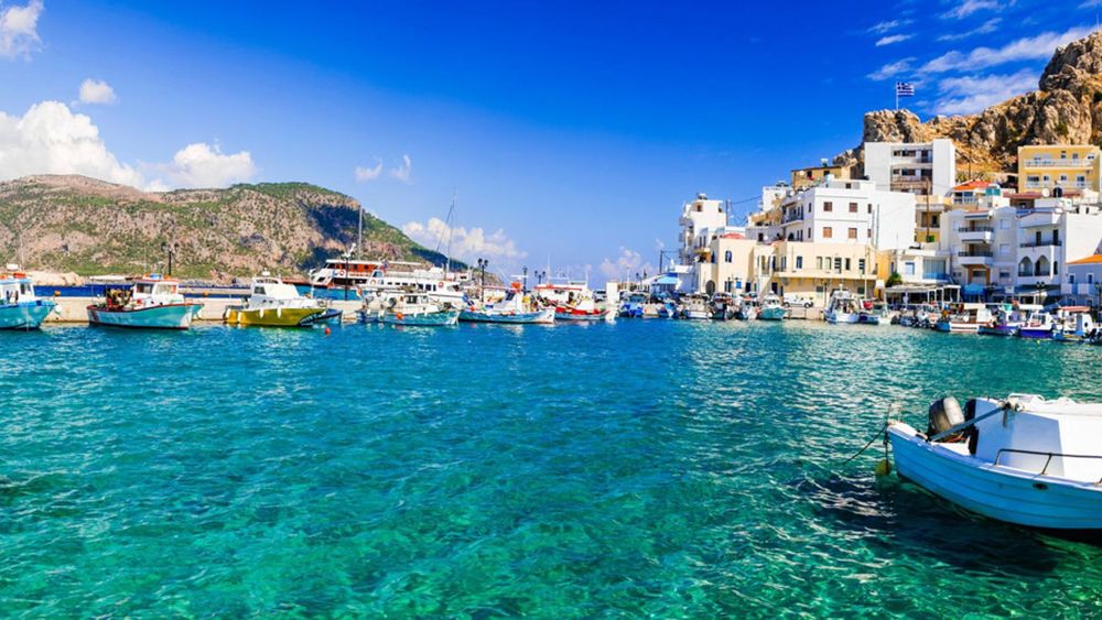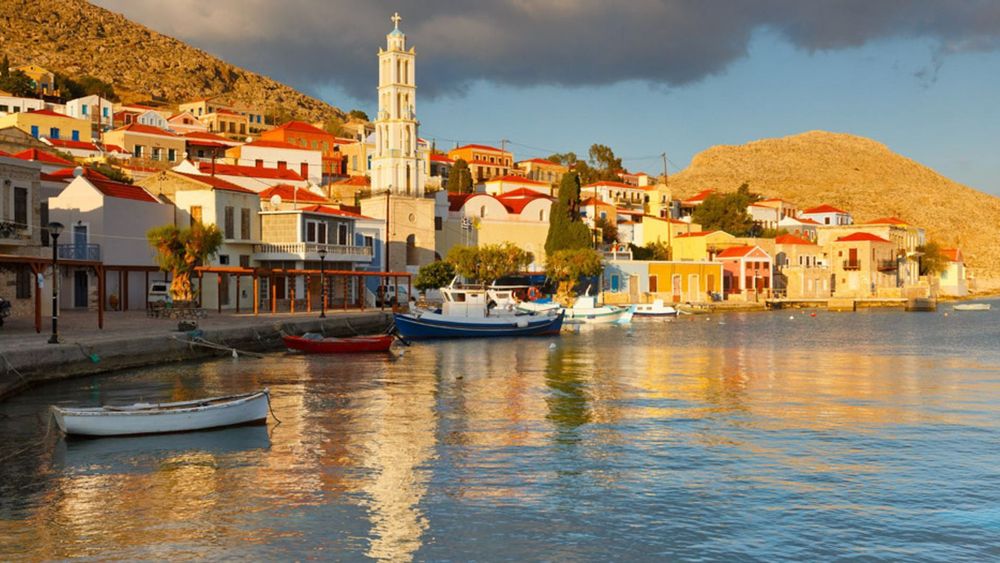 Halki has been inhabited since prehistoric times and has a similar style of architecture and landscape as Rhodes, just more under-the-radar. The main town on the island is located surrounding the harbour, named Nimoborio. Its buildings are colourful, filled with cafes and restaurants to sit at while admiring the view over the Aegean. Besides its beautiful port town, Halki is known for its calm beaches like Potamos Beach, a tranquil beach surrounded by the rugged mountains that form the island.