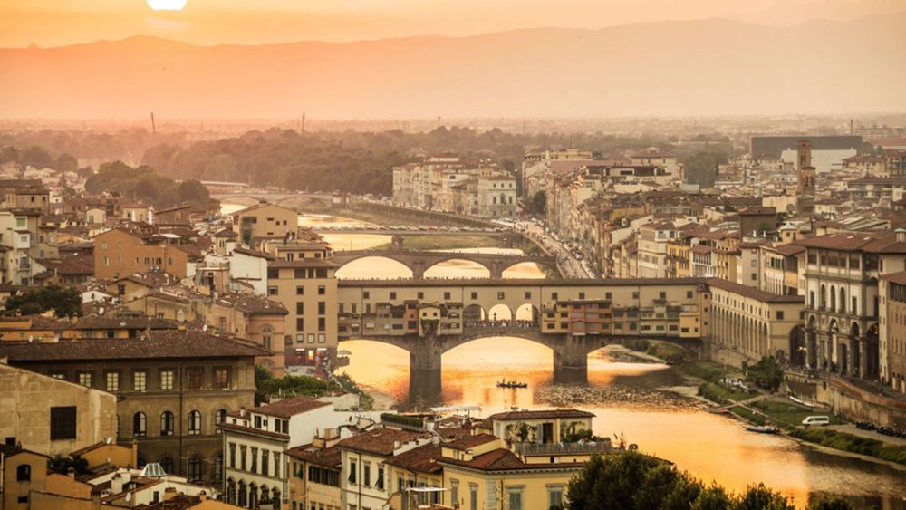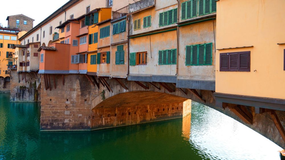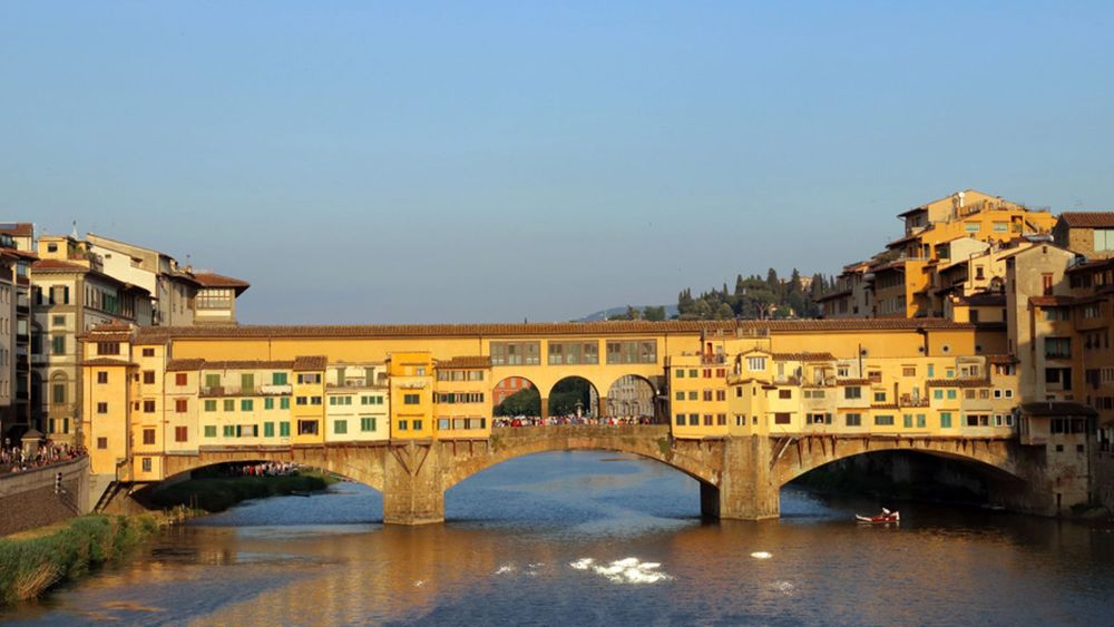The Ponte Vecchio is the famous bridge in Florence that stretches over the Arno river. The bridge itself is an architectural enigma, as numerous shops are integrated into the bridge's construction. Formerly home to fishmongers, butchers and merchants, the bridge now houses various jewellers and boutiques. The bridge is, however, most known for the secret passage that runs from Palazzo Vecchio to Palazzo Pitti which enabled the Medici dynasty to traverse the city without drawing attention to themselves.