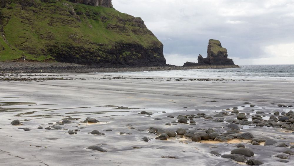 Talisker Bay is about a half-hour drive from Portree, and there is a car park, though it quickly fills up during the summer. The walk is best enjoyed at low tide, as the tide covers up the sand as it rolls in. It makes for a nice romantic walk or even go for a wee dip if it’s warm enough. It does make for a good dog walk, though I recommend that you keep your furry friend on a leash, just in case there are any sheep nearby.