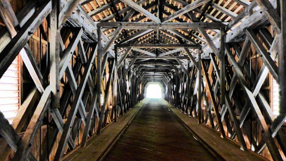 Between the cities of Vaduz in Liechtenstein and Sevelen in Switzerland, there is a historic wooden bridge known as the Old Rhine Bridge that spans the Rhine River. One of the oldest wooden bridges in Europe, the bridge is also referred to in German as the âRheinholzbrĂŒckeâ. The bridge was built in the 13th century, and at the time, it represented a notable engineering achievement. Locals have used the bridge to cross the river for generations in order to transfer goods and animals between Liechtenstein and Switzerland.